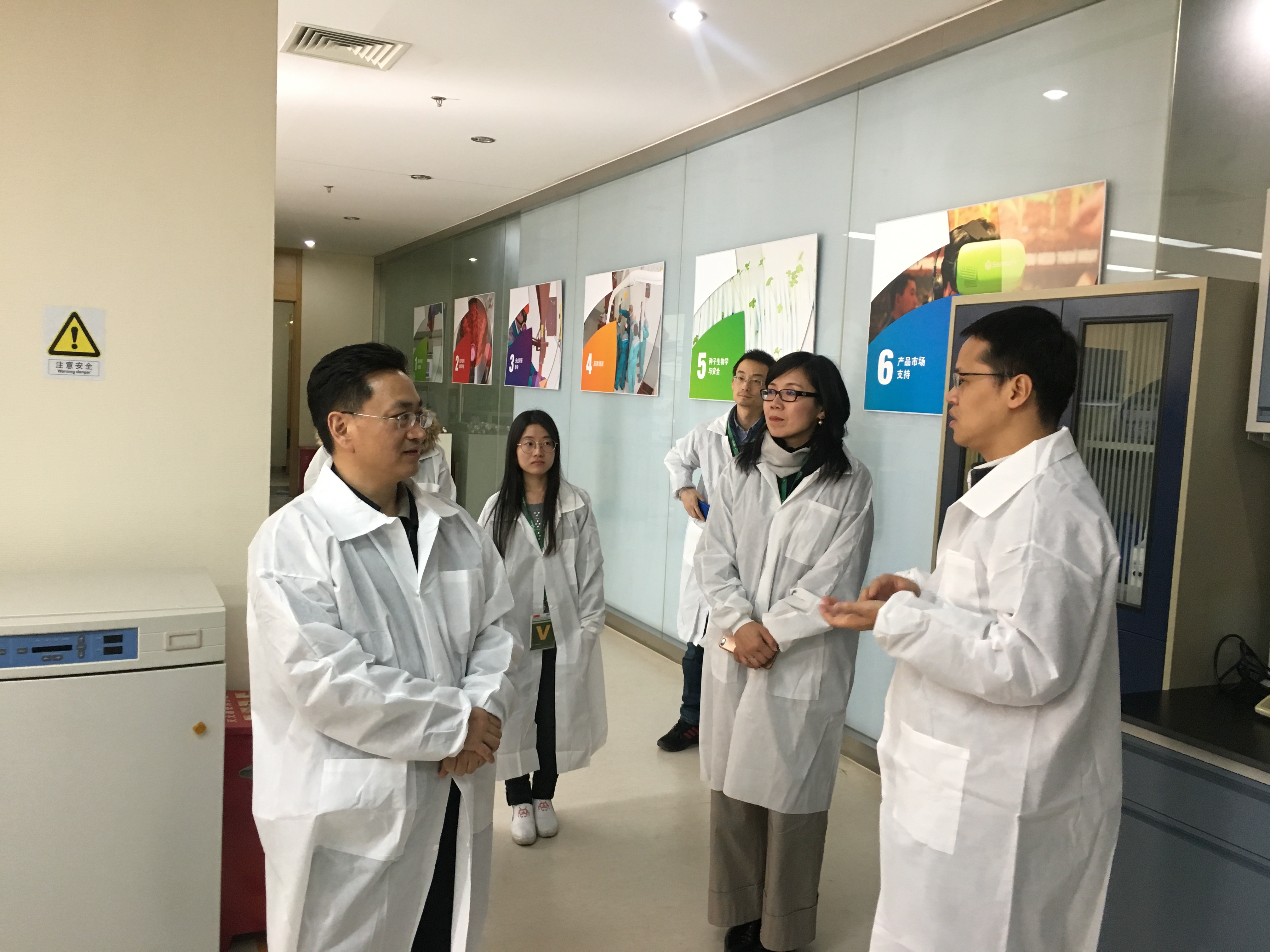 座谈会后,陈主任一行参观了先正达生物科技研究中心,对先正达减量高效农业生产投入品项目科学的研究模式、严谨的研究态度、先进的研发技术给予高度评价。